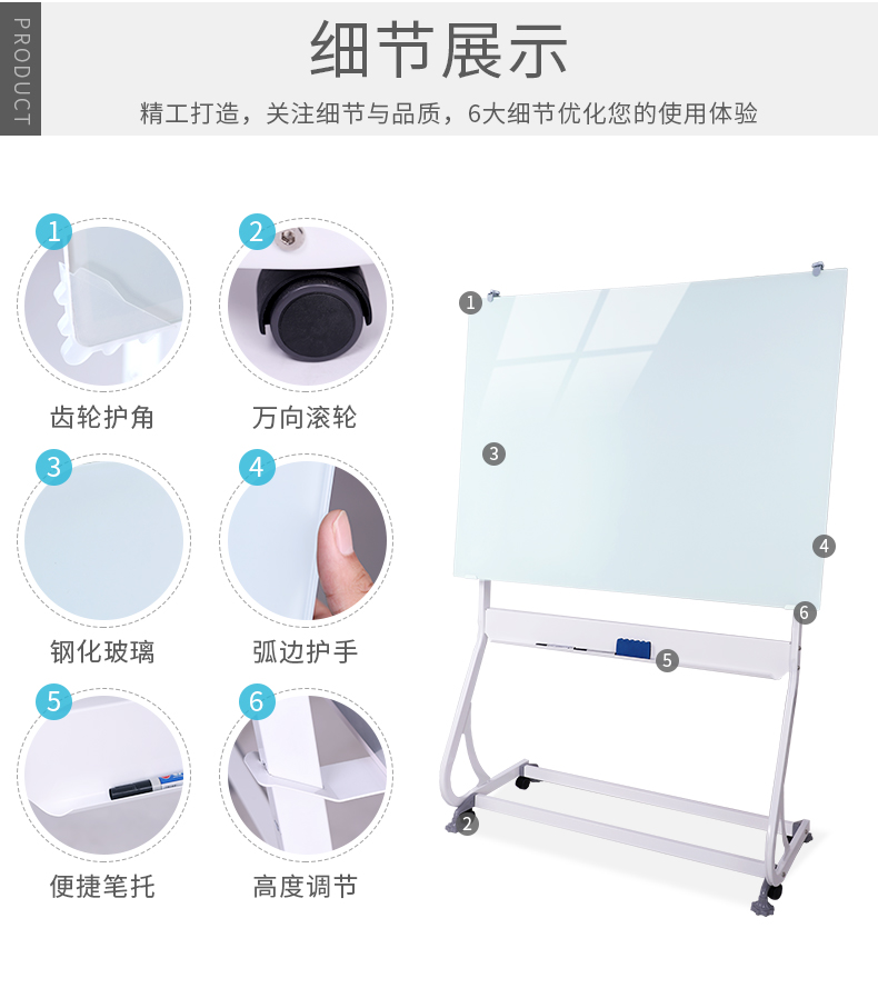 磁性钢化玻璃写字板会议白板投影白板可移动支架玻璃白板