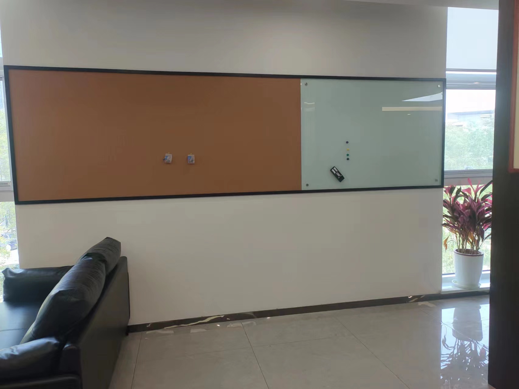 磁性钢化玻璃白板可定制logo文字组合软木板白板黑板可上门安装